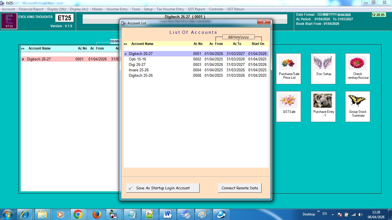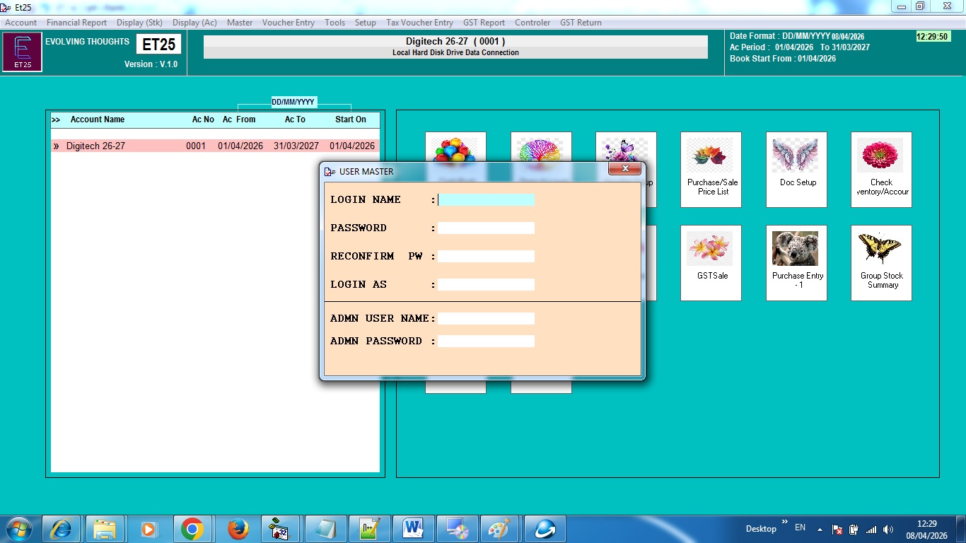 We are thrilled to welcome you to try and enjoy our latest development of the Accounting and Inventory Management Software et25. We built this tool to help you to maintain your business Accounts and Inventory easy way and to submit your GST Return online very comfortably. Et25 will help you to streamline your workflow/increase sales and to increase business activity without the typical hassle.