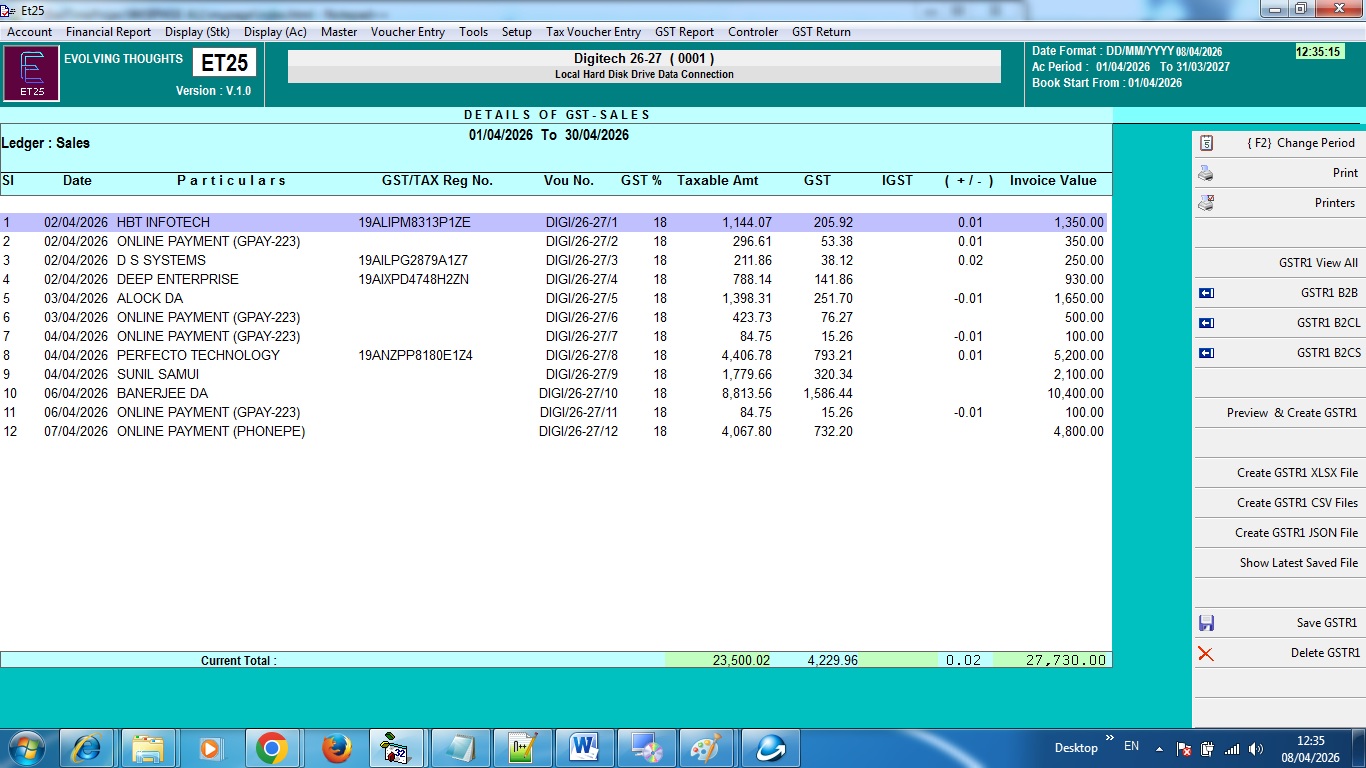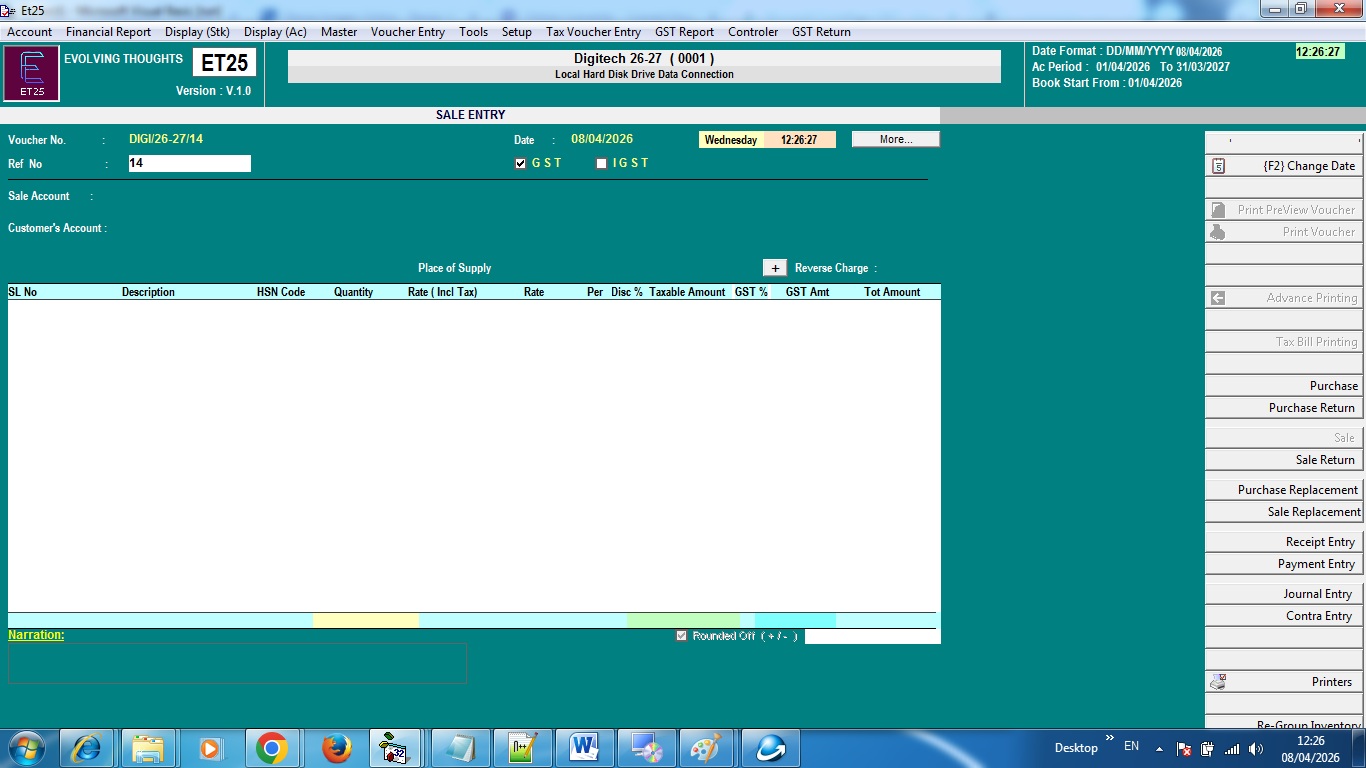 So, Say goodbye to the payment of fees for submitting GST Return and do it your own easily using et25. This Accounting Software has been developed basically for the use of small and medium business enterprises. Now a day purchasing an accounting software for small a business enterprise really hard for their high price. You can use this Application at Free of Cost now for a year. Since this is a new application your opinion and suggestion will be more costly than this application.